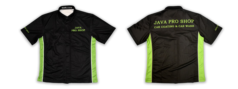 | カーコーティングの専門店、ジャバPRO SHOP様からスタッフユニフォームの製作依頼をいただきました。 ポリエステルハードメッシュ280g素材に全面フルカラープリントしてサイドの色の切り替えには再起反射 のパイピングを付けフロントホックは比翼タイプでボタンを隠し車に傷が付かない仕様で製作しました。 |