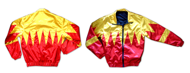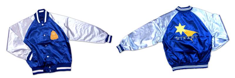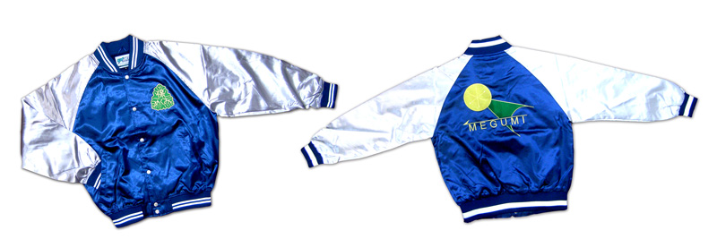 | ・学園祭で踊るダンスの衣装として作らせていただきました。 ・サテンのラグランスタジアムジャンパー背面に大きくシルクプリントし、左胸には2色のシルクプリントしています。 |