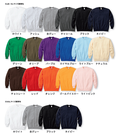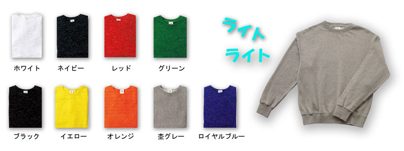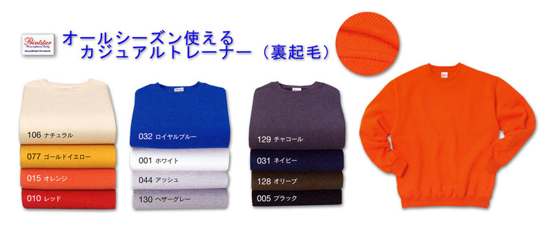 | 特 徴 | 中厚タイプのトレーナーは裏が起毛で暖かく気軽にお使いできます。 | ||||||