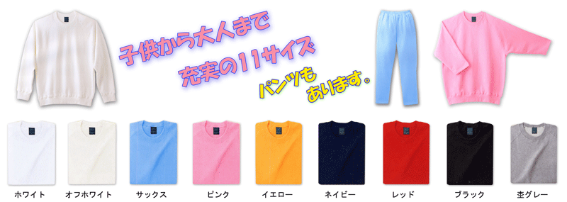 | 特 徴 | 中厚地で、サイズ、カラーが揃ってお手頃価格 | ||||