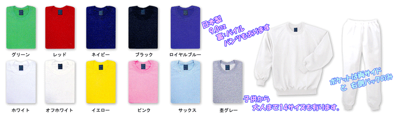 | 素 材 | 表:綿100% 裏:T/C 20/80 起毛タイプ | |||||